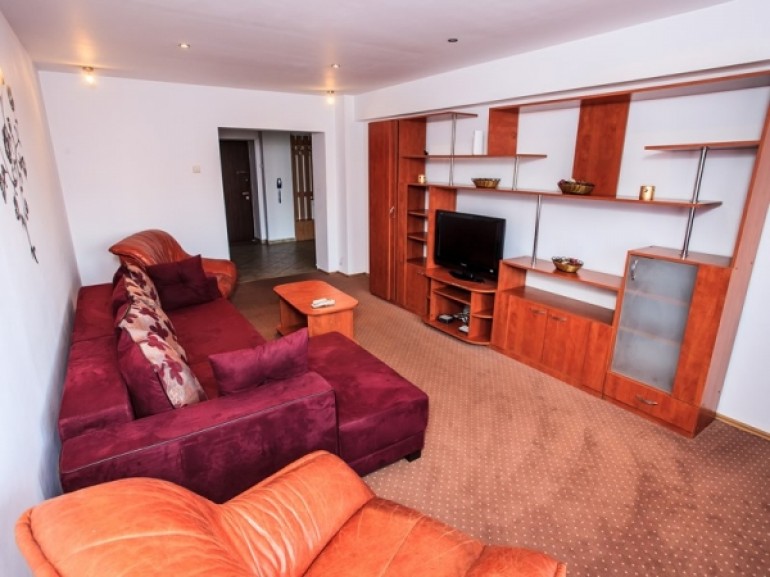 Apartamentul este decomandat si a fost renovat recentCamera de zi este mobilata cu canapea mare, extensibila, masuta de mijloc si comoda TV. Dormitorul asigura confortul prin patul matrimonial, comoda si dulap pentru haine. Apartamentul spatios cu doua camere va oferim confortul dorit, numai bun pentru o sedere de cateva zile. Bucataria este mare, complet utilata, frigider, cuptor cu microunde, cafetiera, tacamuri si vesela.